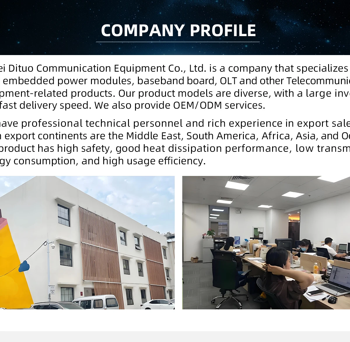Productos principales:OLT,RRU,AAU, fuente de alimentación, BBU